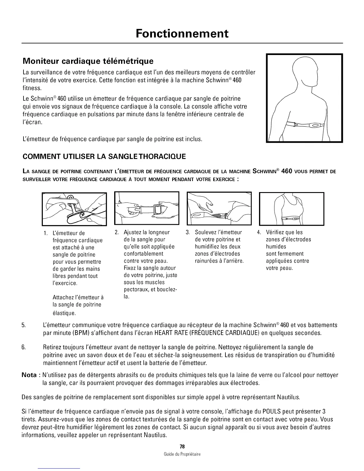 Le Schwinn®460 utilise un 6metteur de fr_quence cardiaque par sangle de poitrine