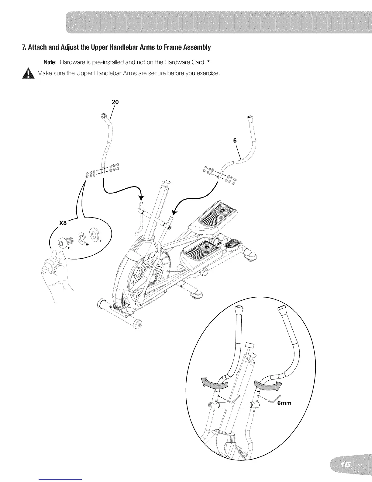 _Make sure the Upper Handlebar Arms are secure before you exercise.