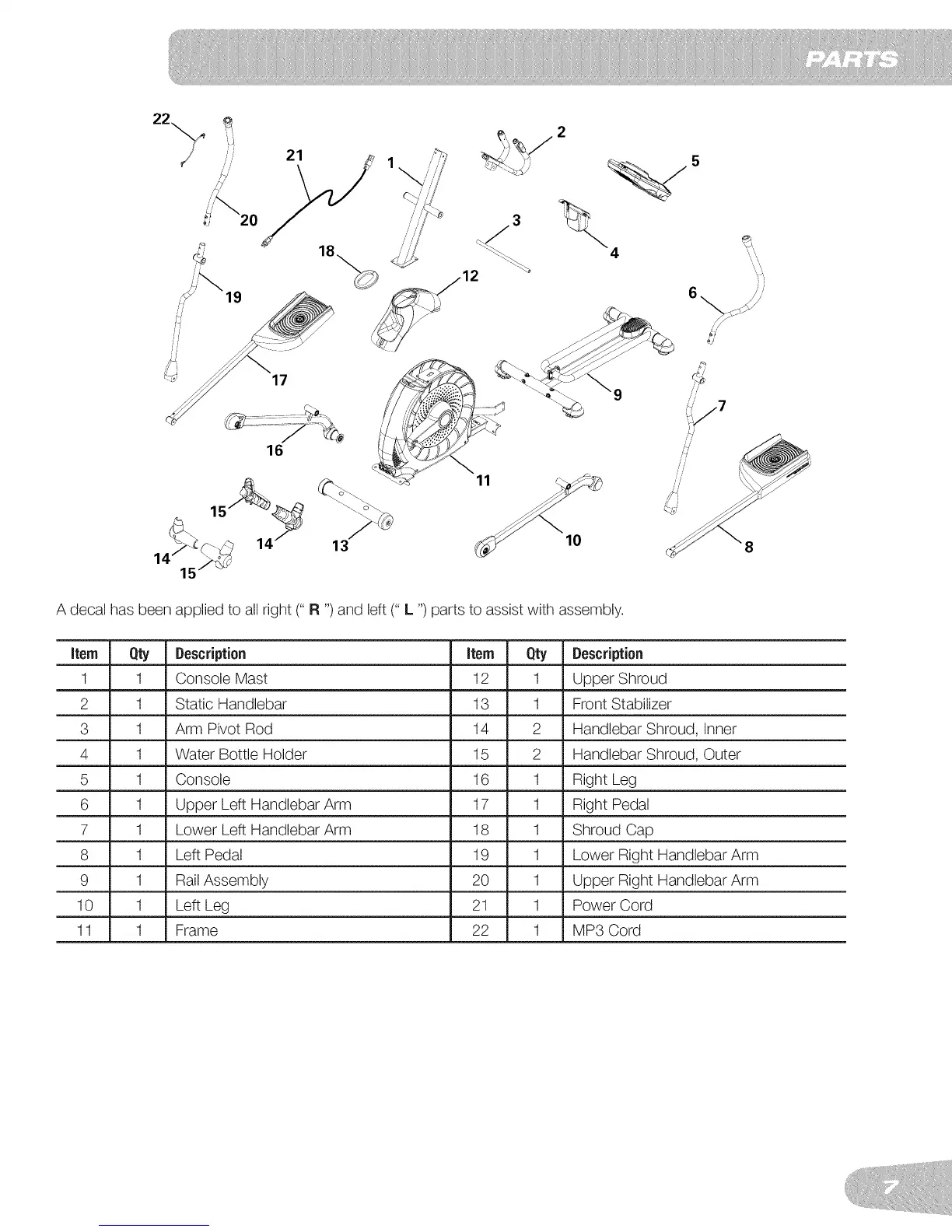 8 1 Left Pedal 19 1 Lower Right Handlebar Arm