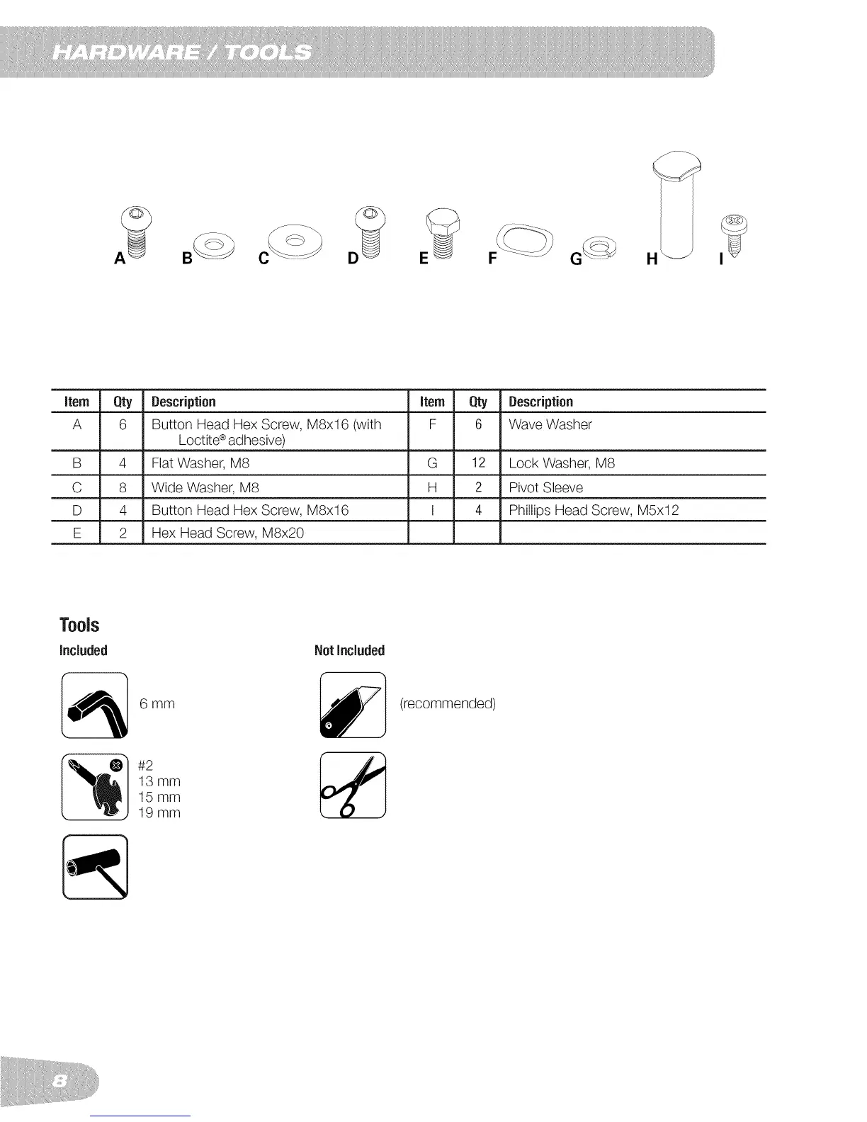 B 4 Flat Washer, M8 G 12 Lock Washer, M8