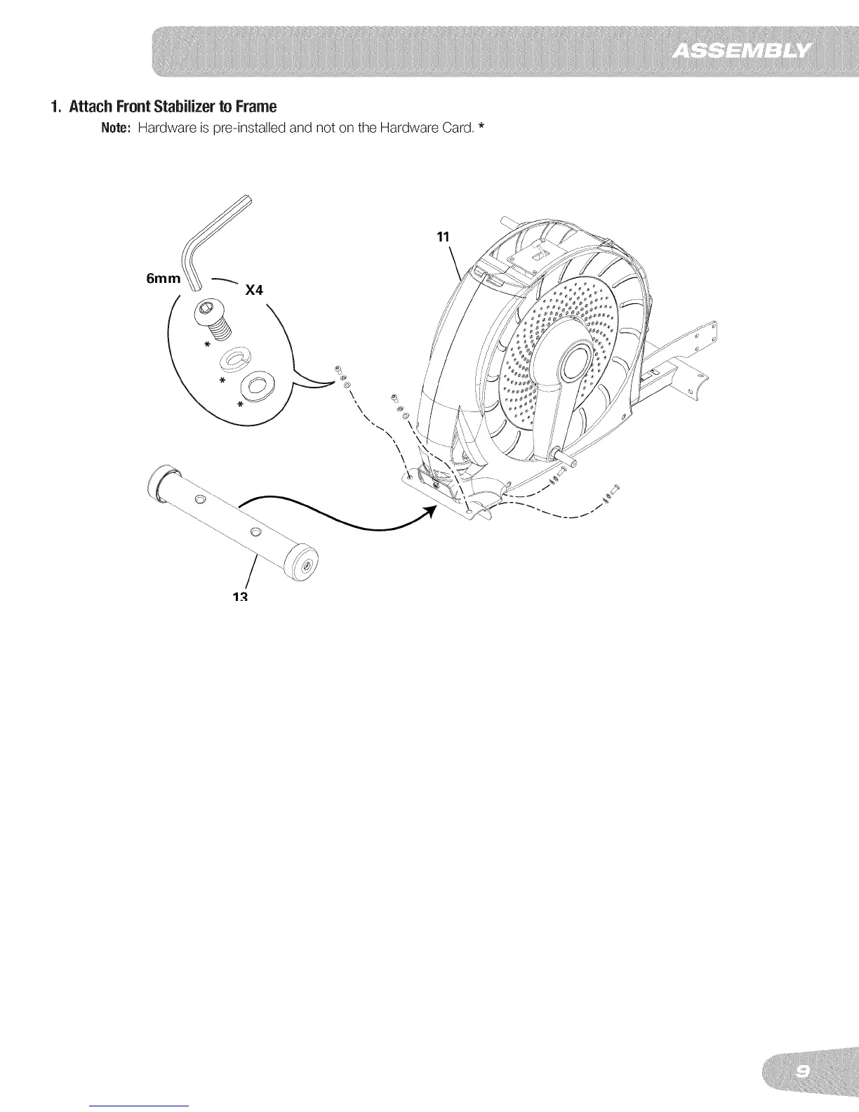 Schwinn 470 - Assembly; Attach Front Stabilizer to Frame