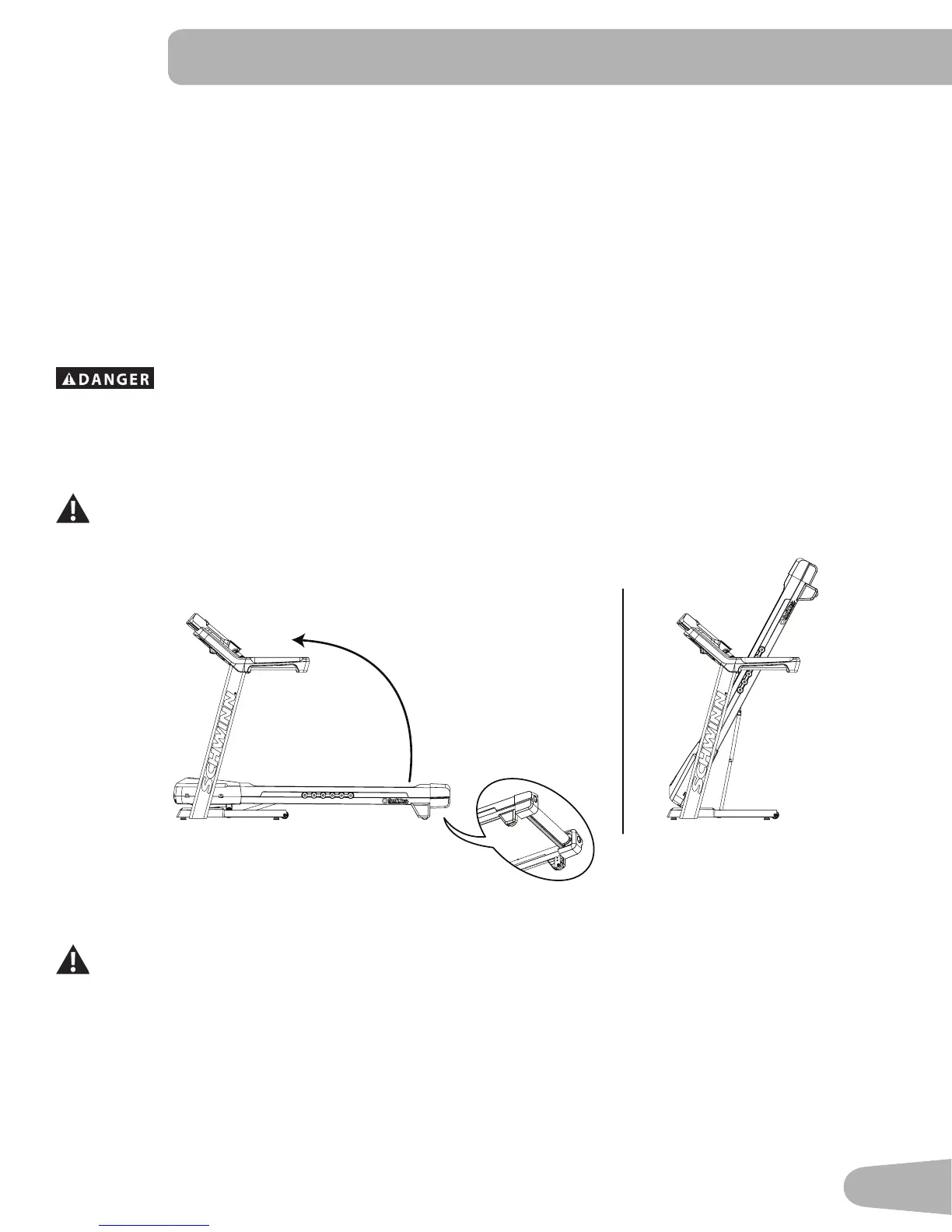 3. Fold the treadmill. Refer to the “Moving the Machine” procedure in this manual. Be sure that the hydraulic lift is correctly