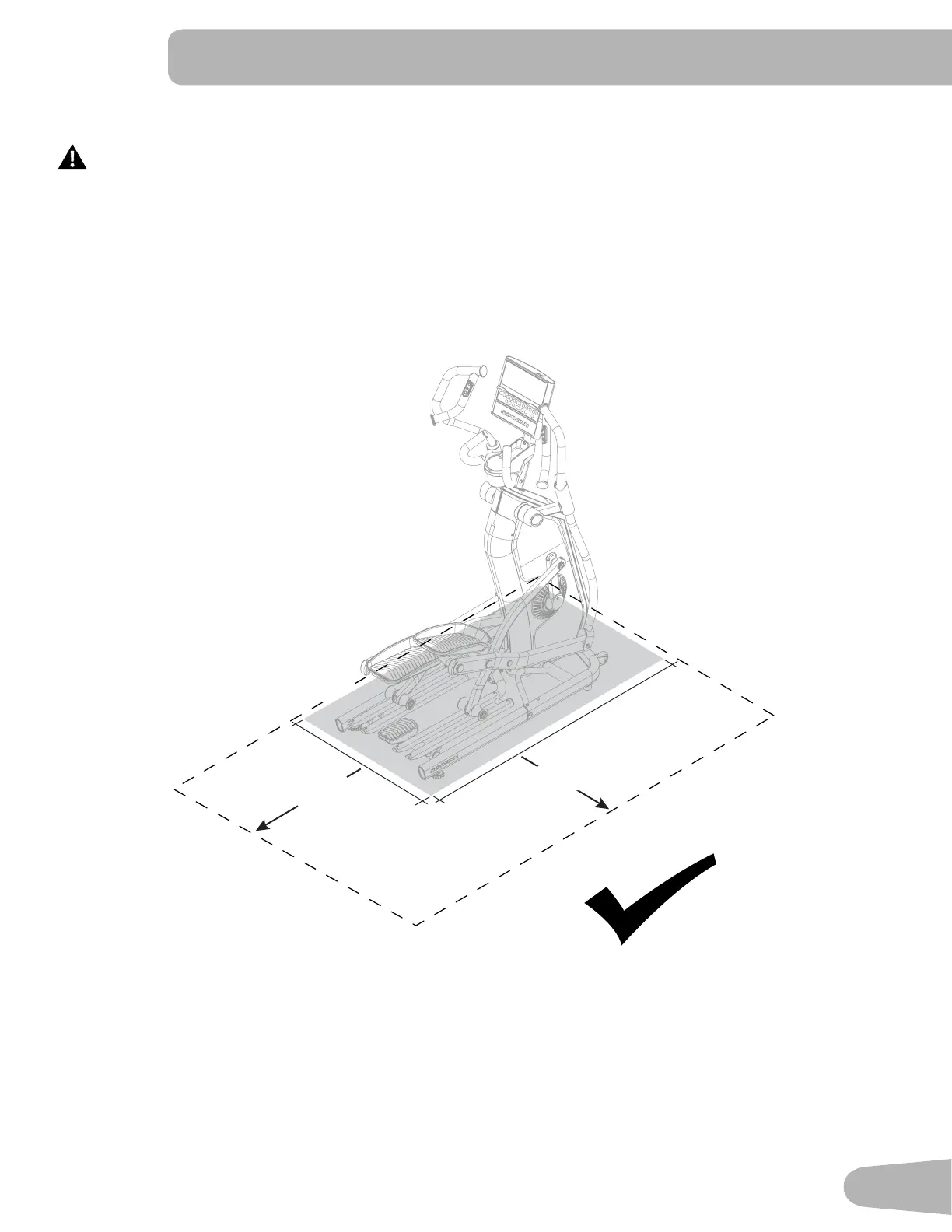 For safe operation, the Intended Workout Area must be on a hard, level surface. Allow a minimum workout