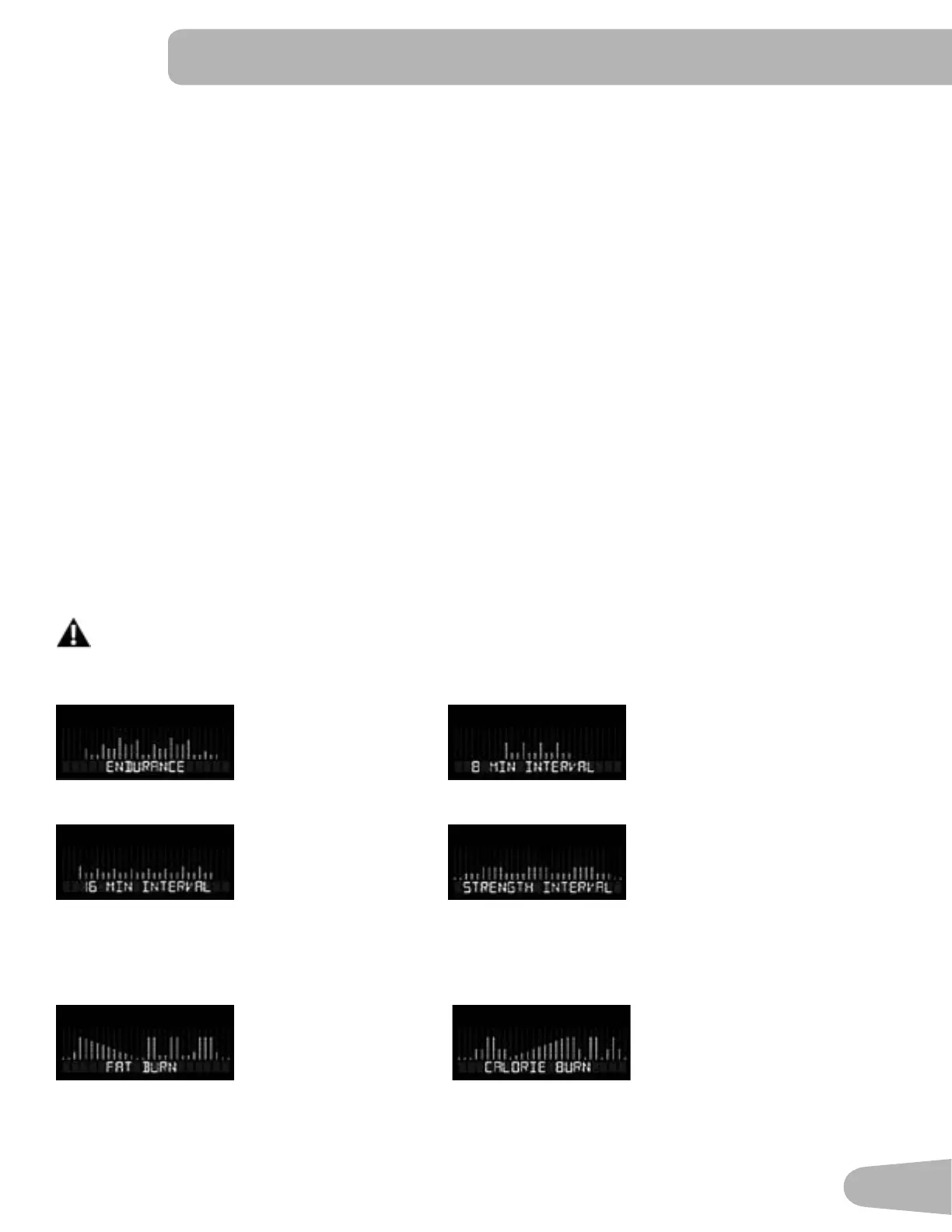2. Tap the Programs button to cycle through the menu of workout programs to the desired workout.