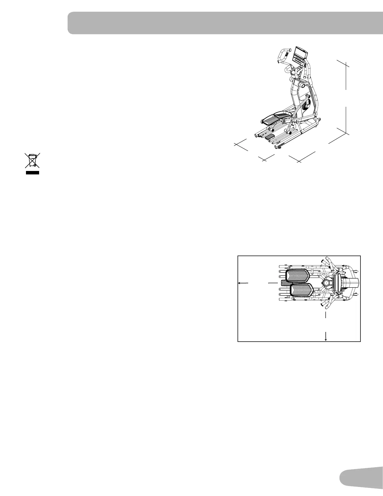0.6 m (24 in) along the side used to access the machine and to the rear of the machine. Be sure that the workout space