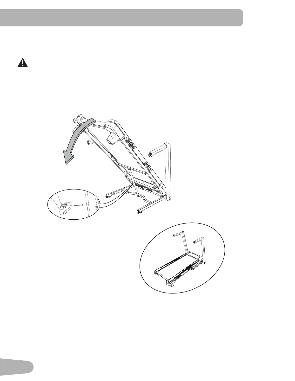 Slightly push the walking deck forward toward the front of the machine. With your left foot lightly push the top part of