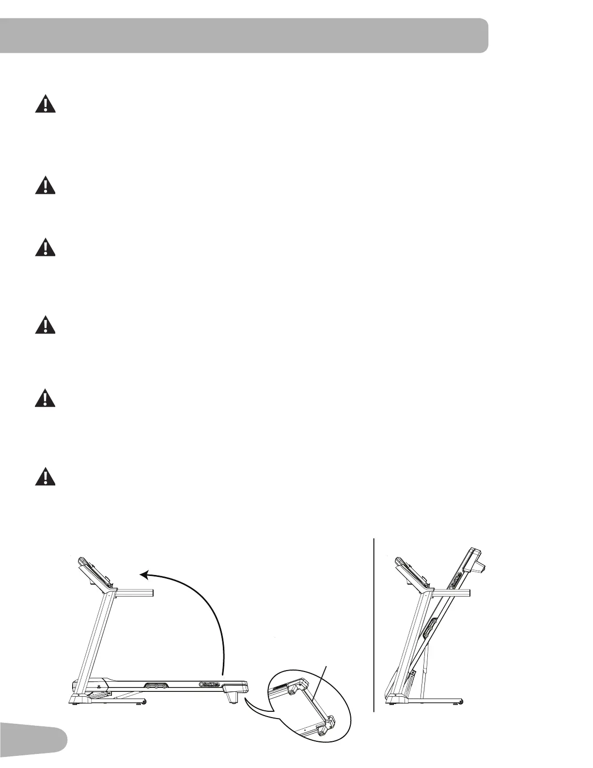 4. You must fold the treadmill before you move it. Never move the treadmill if it is not folded.