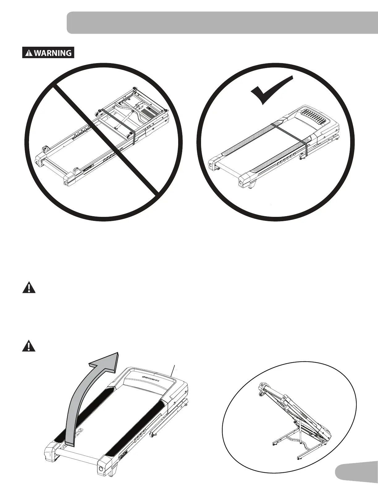 Do not lean against the treadmill when it is folded. Do not put items on it that could cause it to become