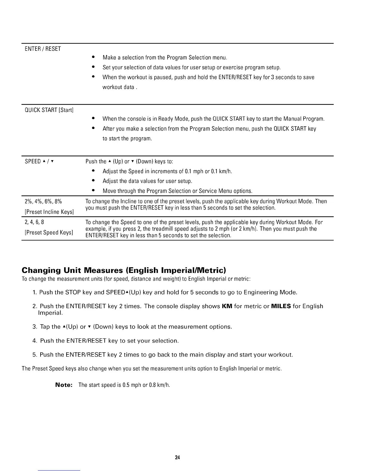 Tochangethe Speedto one of the preset levels, pushthe applicable key during Workout Mode. For