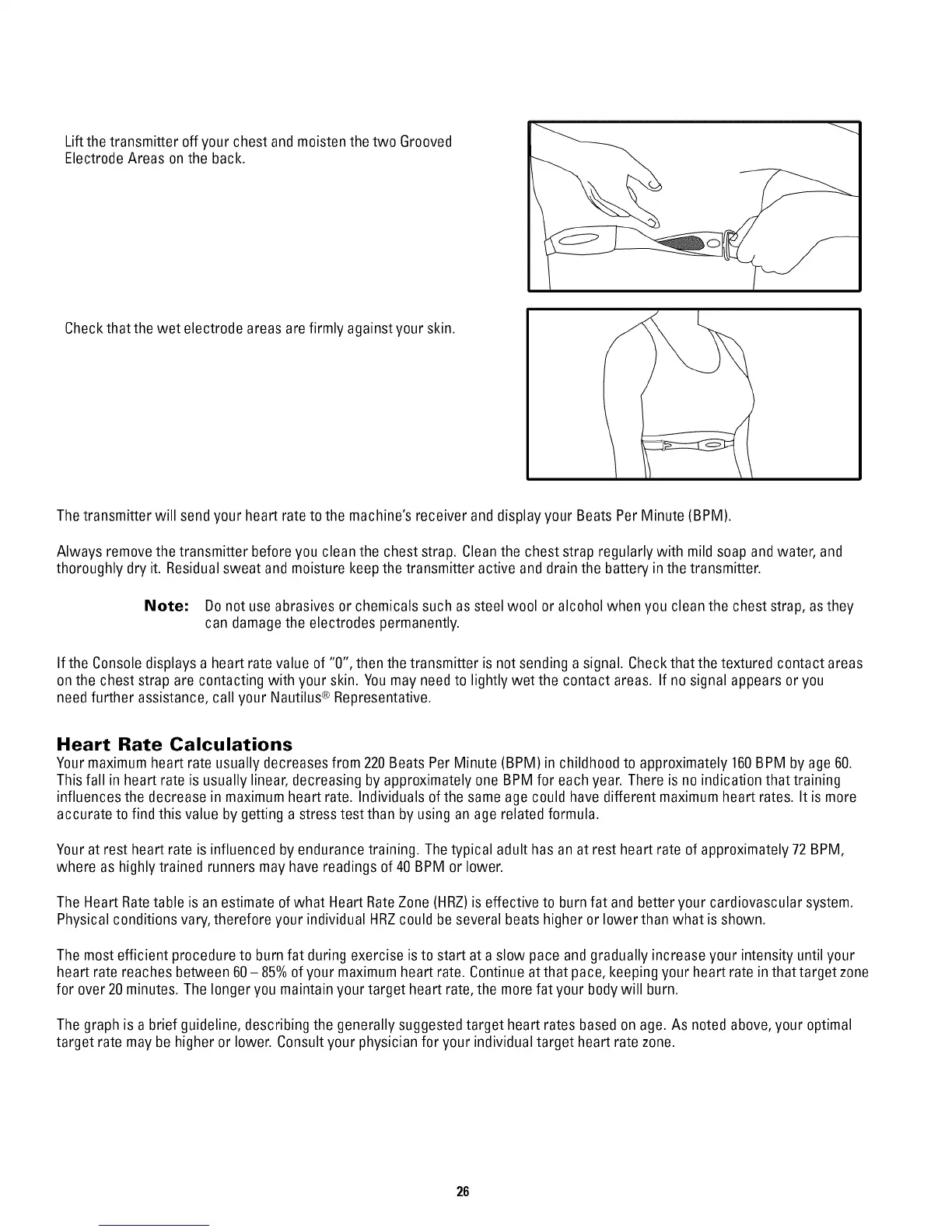 Note" Donot useabrasives or chemicals such assteel wool or alcohol when you clean the chest strap, as they