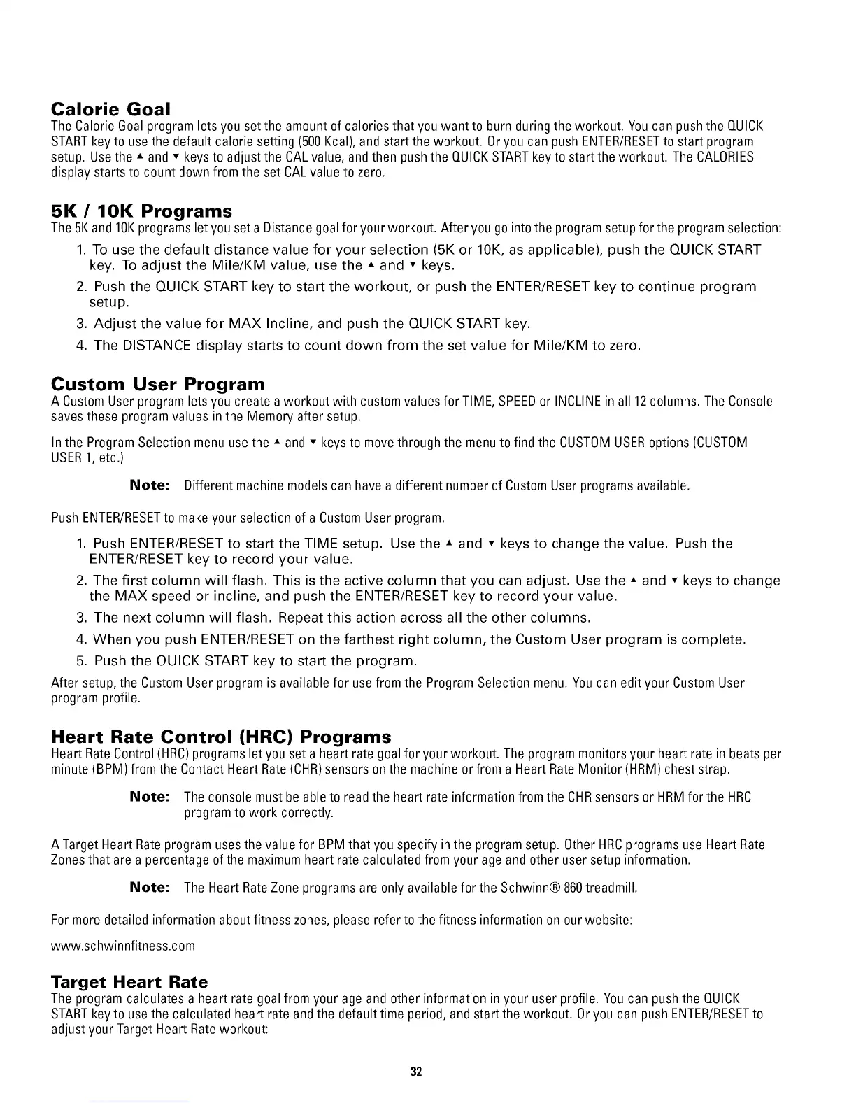 Note: The Heart RateZone programs are only available for the Schwinn® 860treadmill.