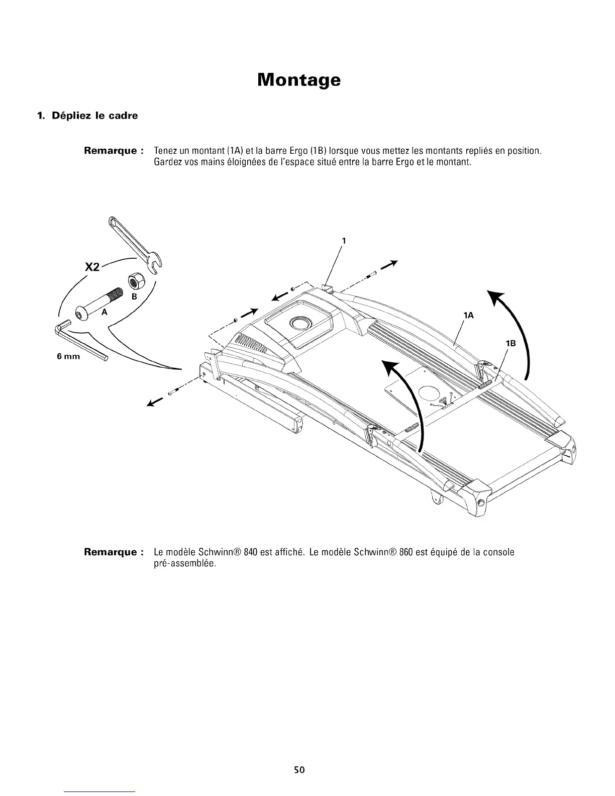 Remarque : Tenezun montant (1A)et la barre Ergo(1B) Iorsque vous mettez les montants repli6s en position.