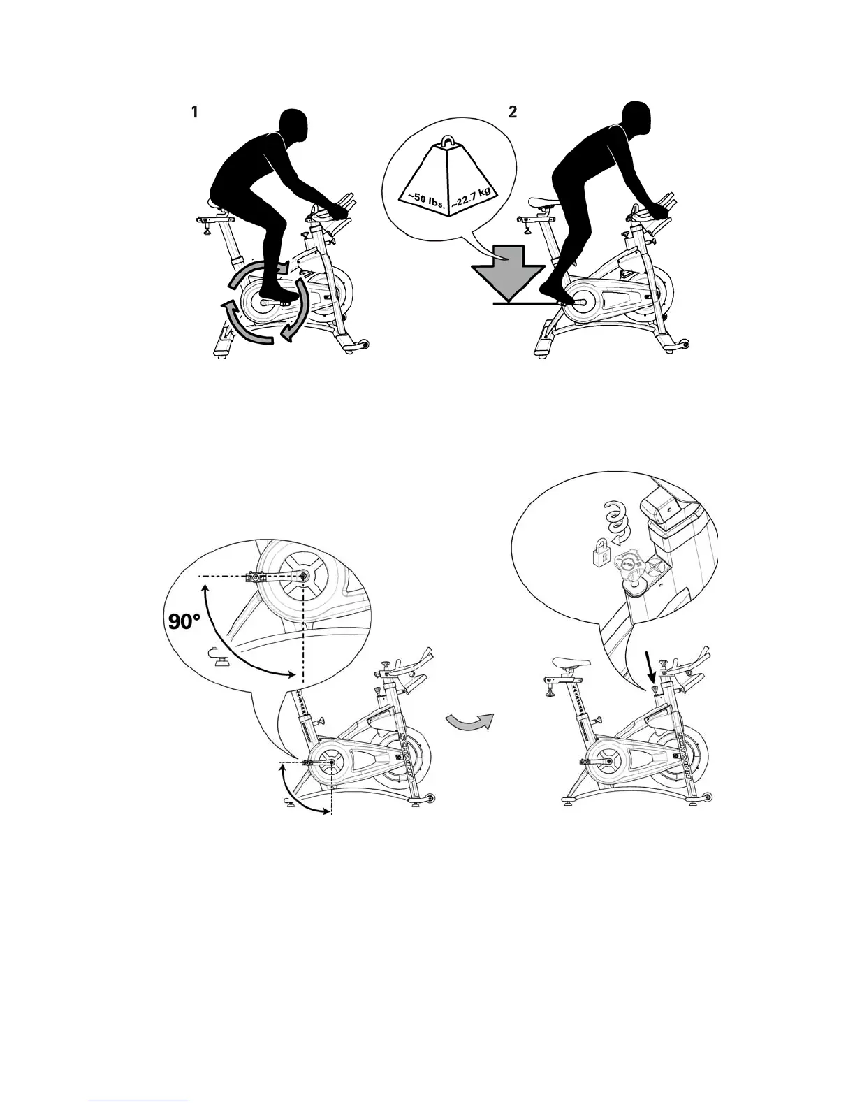Collocare saldamente un peso di 22,7 kg sul pedale • Ponga una pesa de 22,7 kg (50 lb) en el pedal • Coloque um haltere de 50 lb