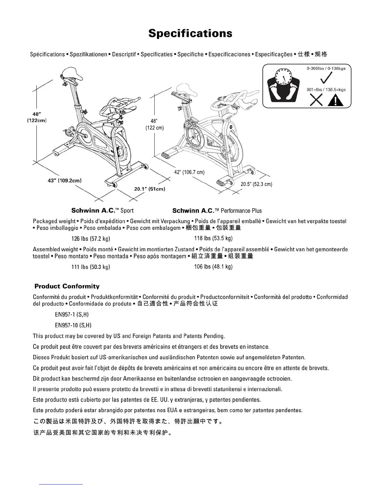 Schwinn A.C. Performance Plus - Specifications