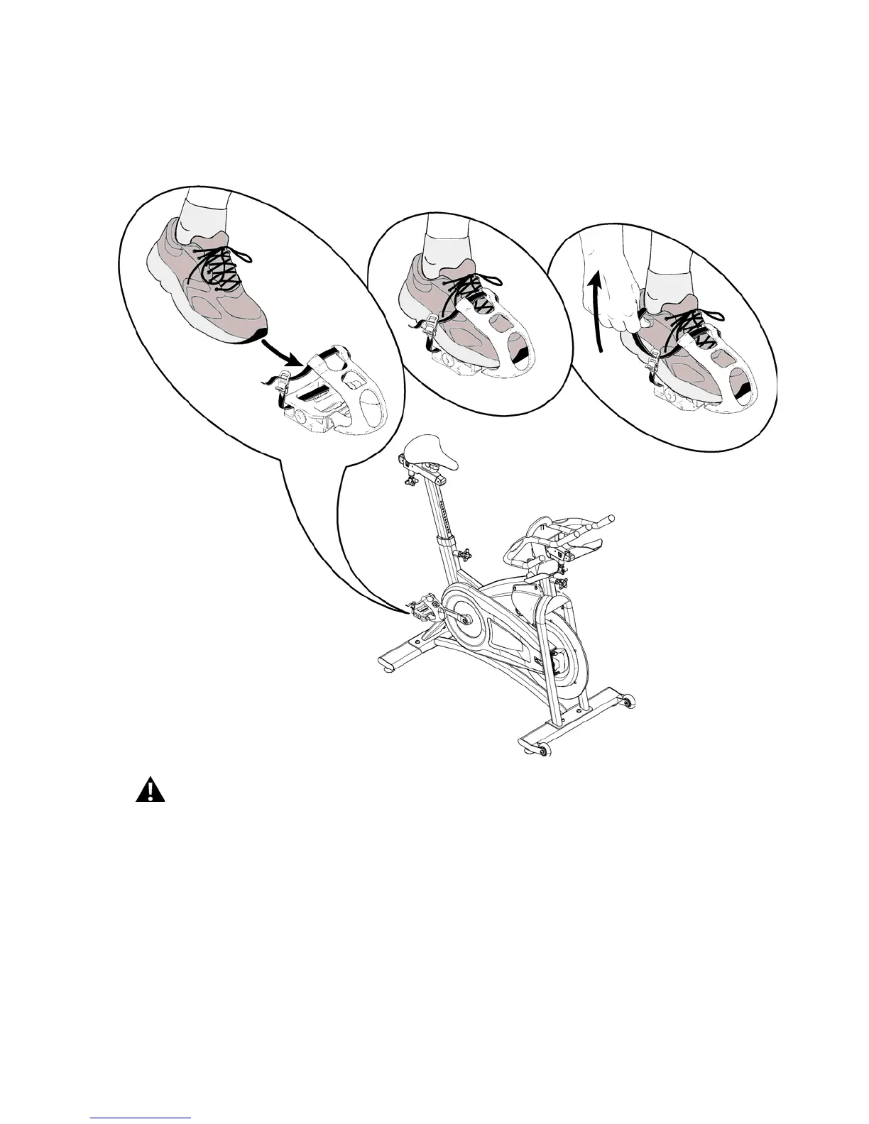 Placez les deux pieds sur les pédales et assurez-vous que la courroie de pédale les retiennent bien en place.