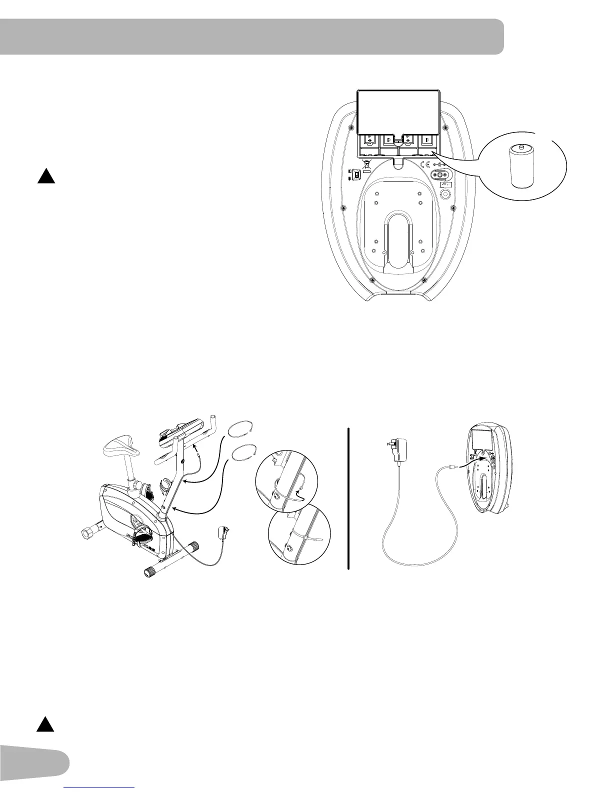 NOTICE: If you use a power adapter for your bike, make sure that the cord stays clear of the path of the pedals.