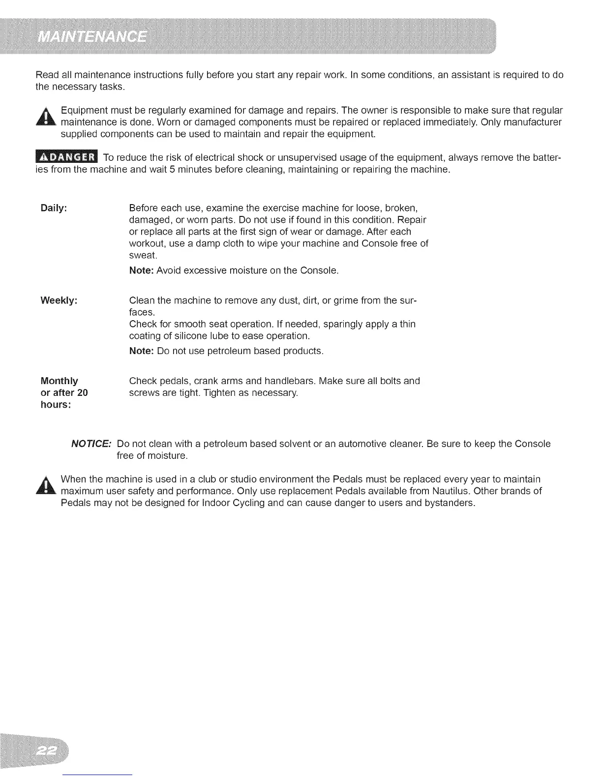 maximum user safety and performance. Only use replacement Pedals available from Nautilus. Other brands of