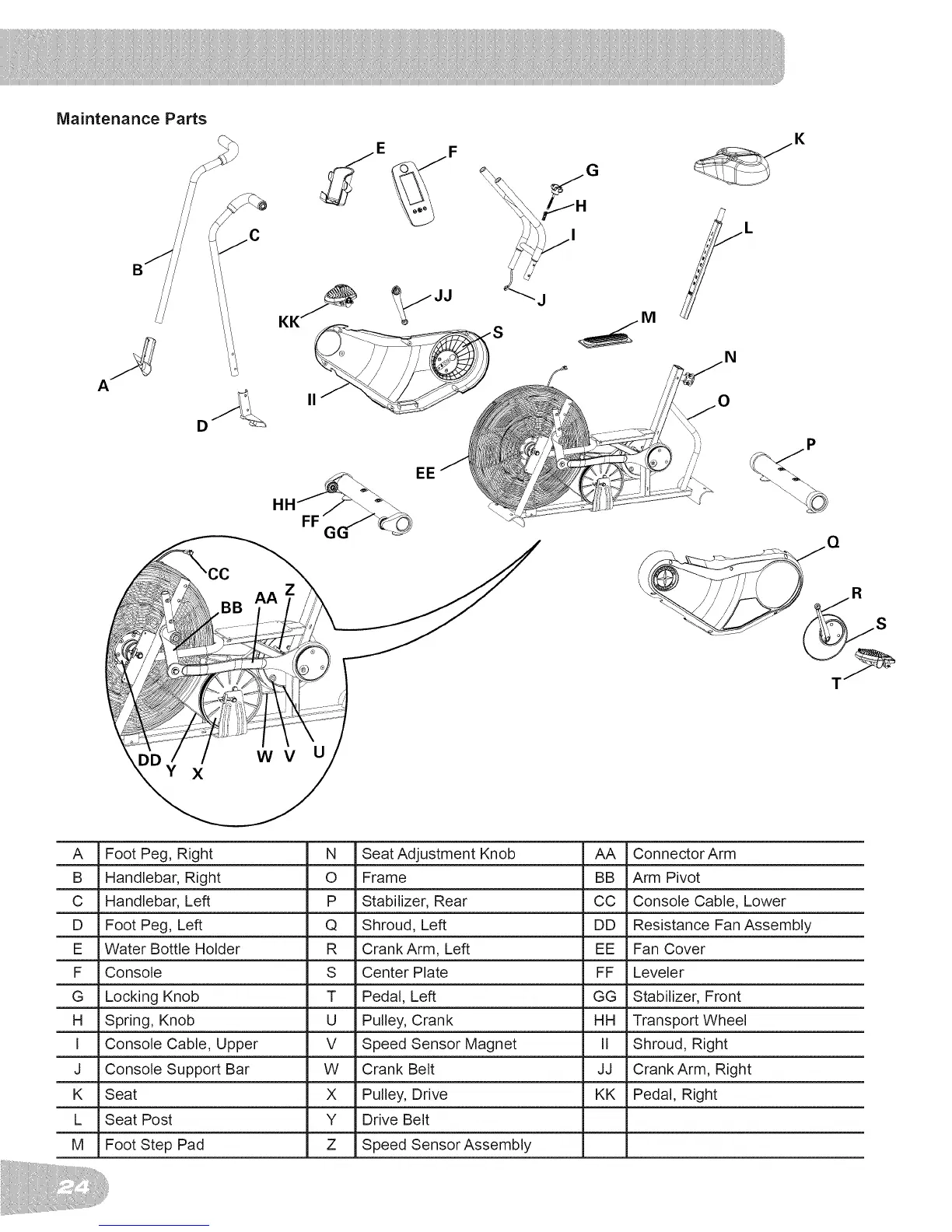Schwinn AD6 - MAINTENANCE PARTS LIST