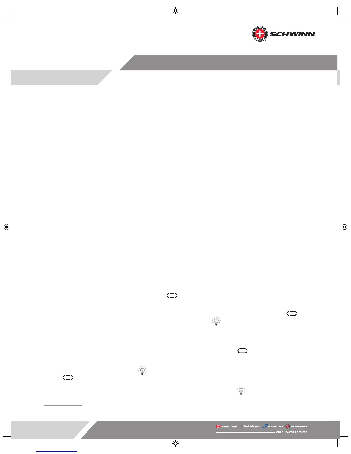 1 Does not aect power calculations on Schwinn Power bikes.