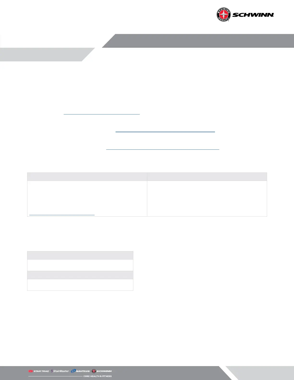 by visiting the Schwinn Equipment Support website at: