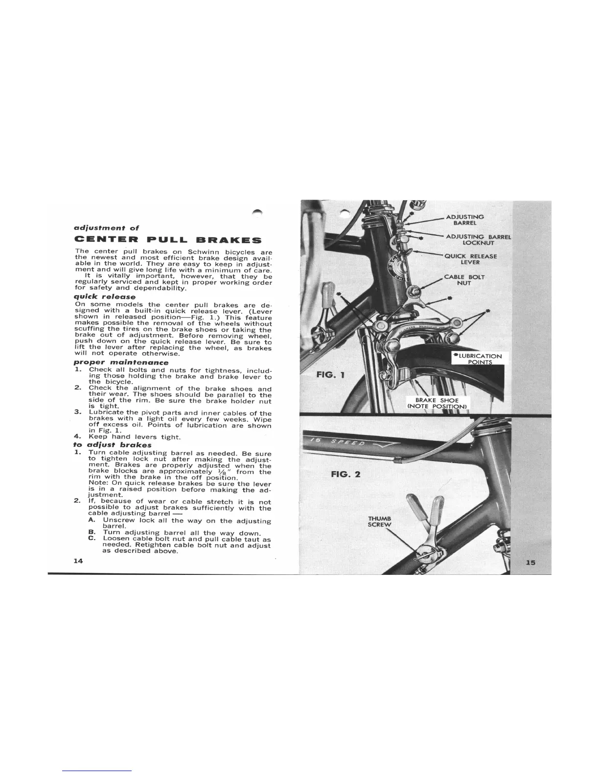 Schwinn Paramount - adjustment of CENTER PULL BRAKES; to adjust brakes