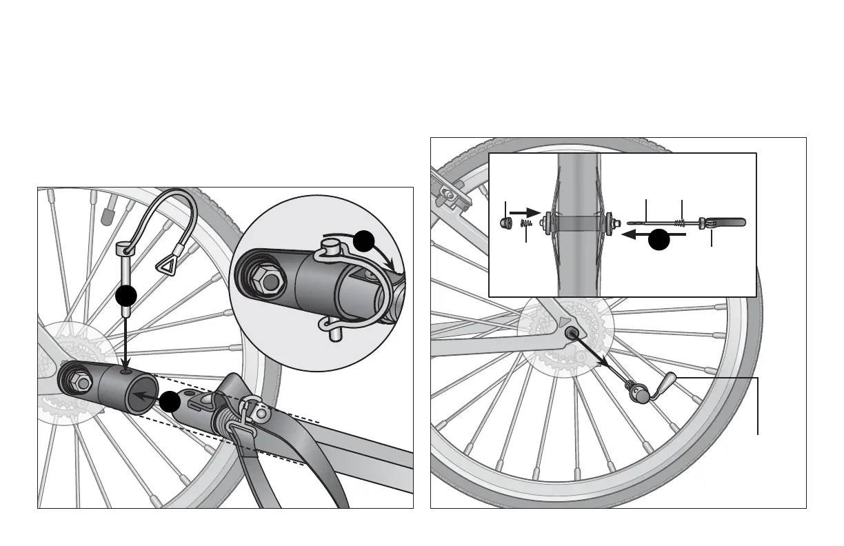 ❷ Remove the axle skewer and spring. Leave the wheel in place.