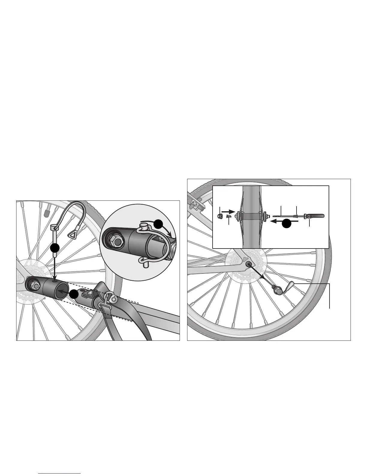 ❷ Remove the axle skewer and spring. Leave the wheel in place.