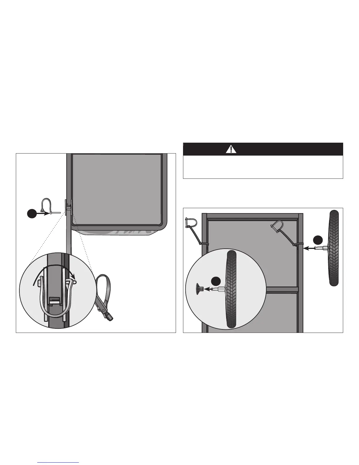 Wheels that are not securely locked in place may fall o the