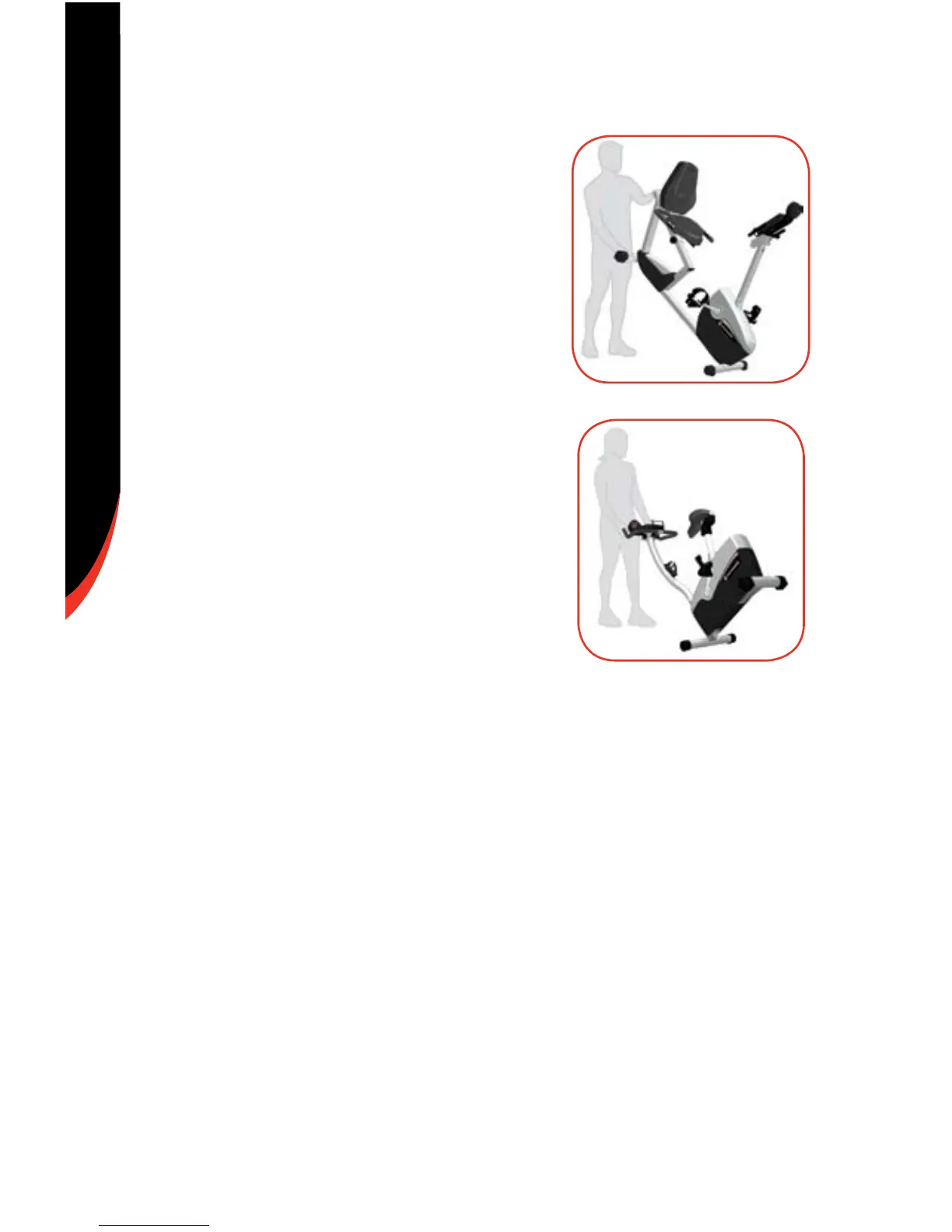 To move the recumbent bike, carefully but securely