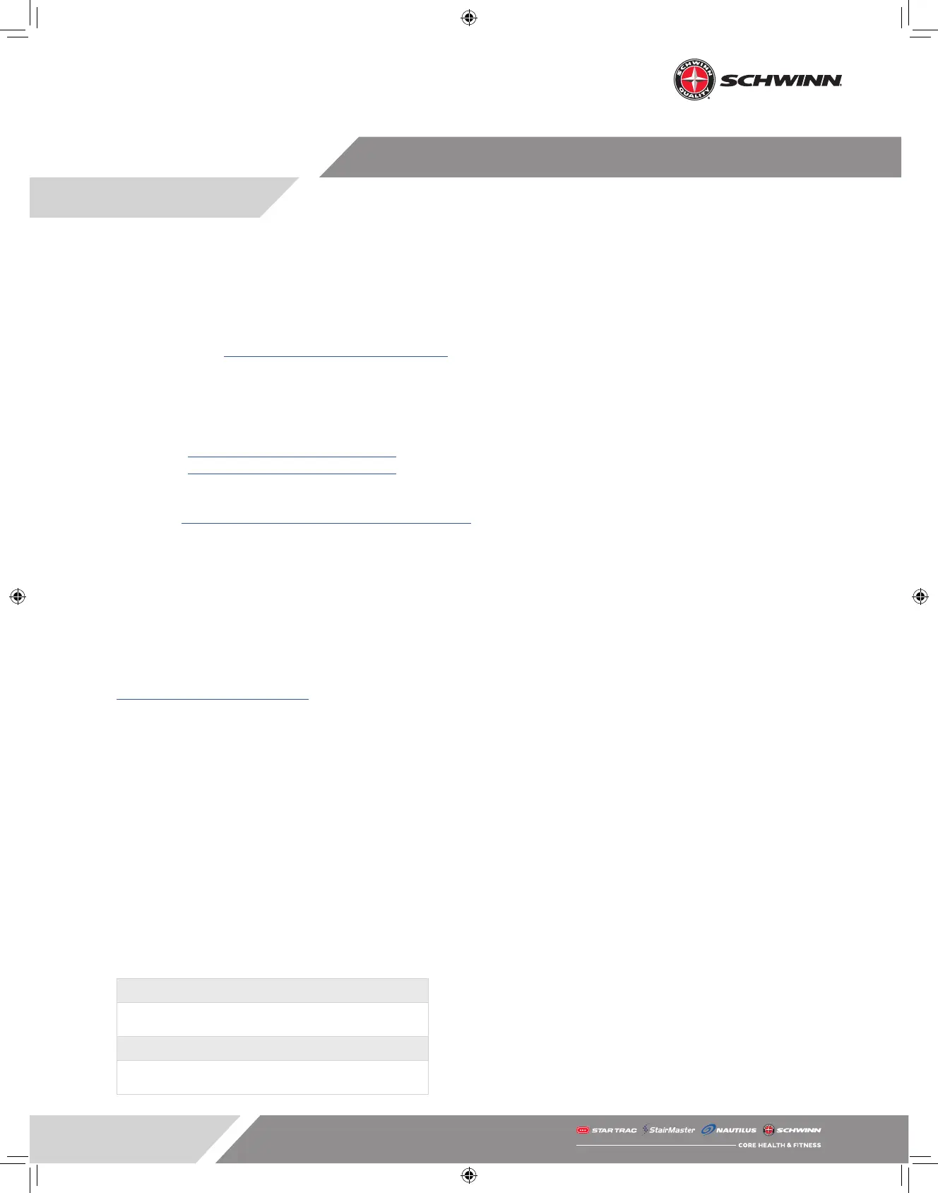 • Owner’s and Installation manuals for all Core Health & Fitness brand products.