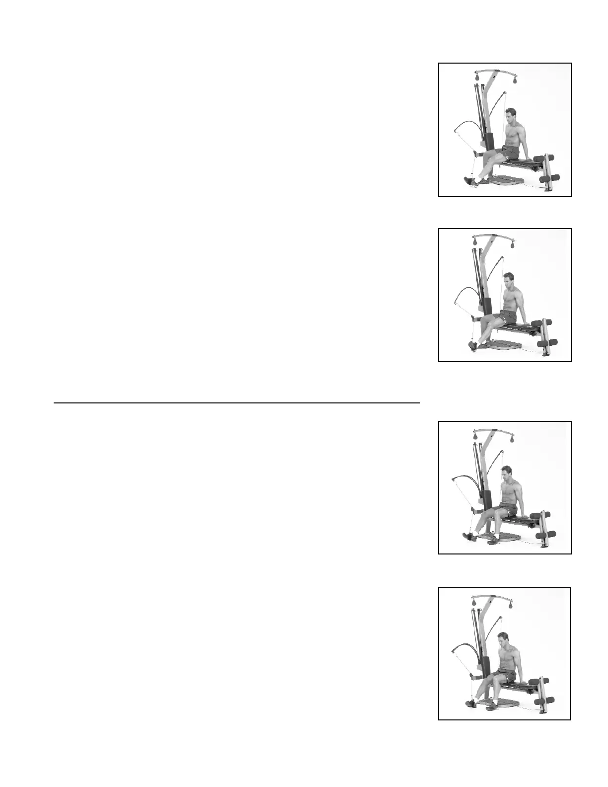 • Sit on the bench with one side of your body