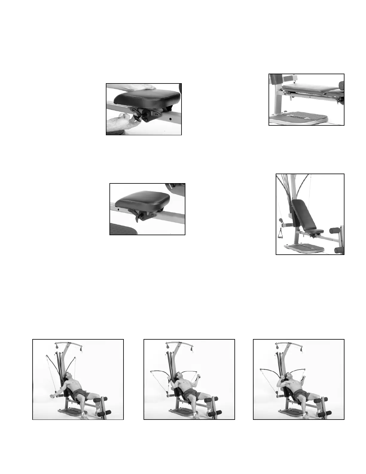 Begin by reaching back for hand grips. Curl up toward your shoulders. Turn your wrists forward.