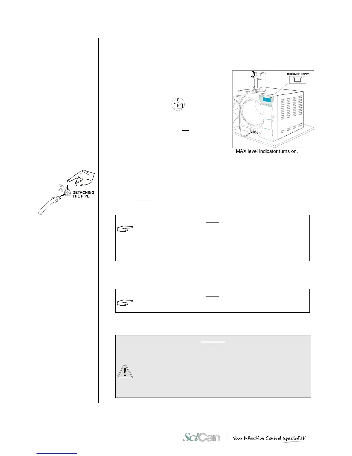 The first time the sterilizer is used or when the MIN water level indicator comes on, you will
