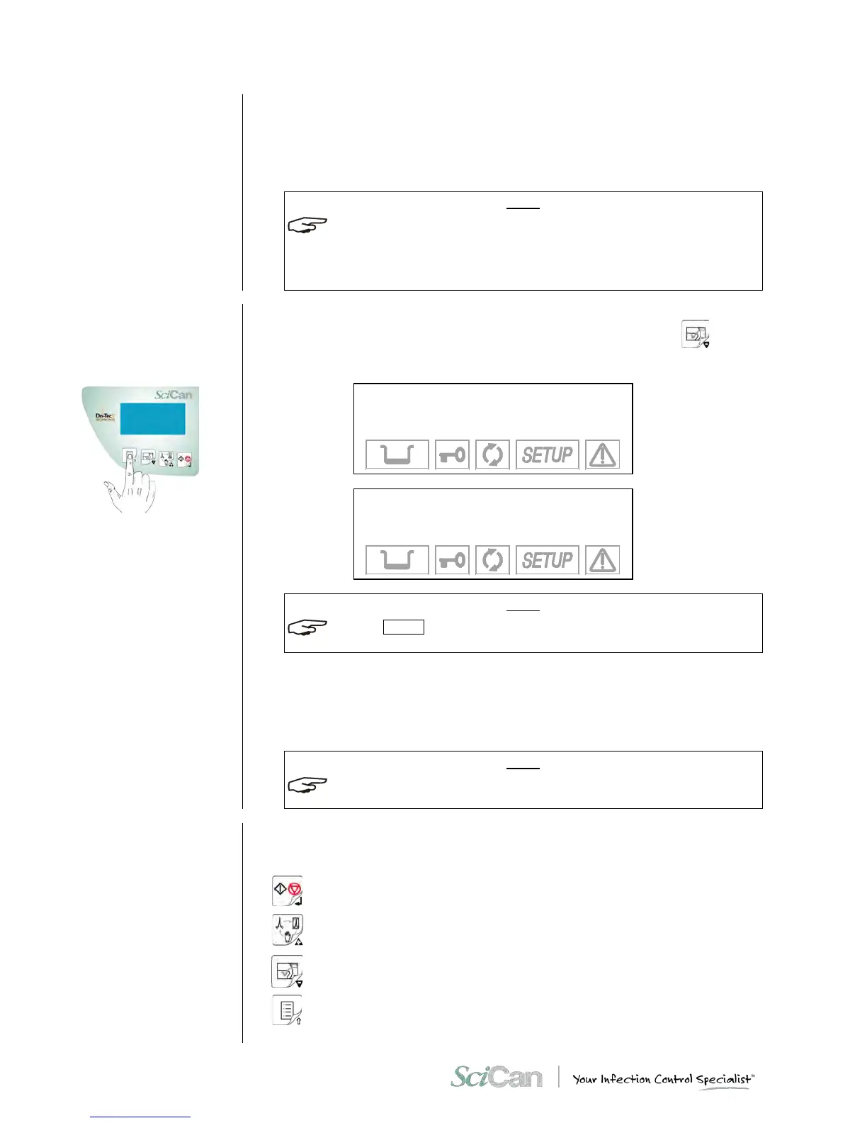 To enter the SETUP mode, hold down the ⇑ key on the control panel for several seconds, until