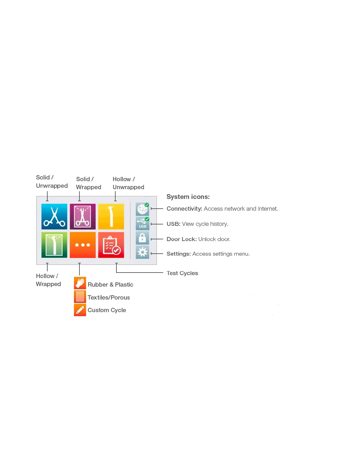 The home screen default setting shows icons for the four most common cycles: Solid Unwrapped, Solid