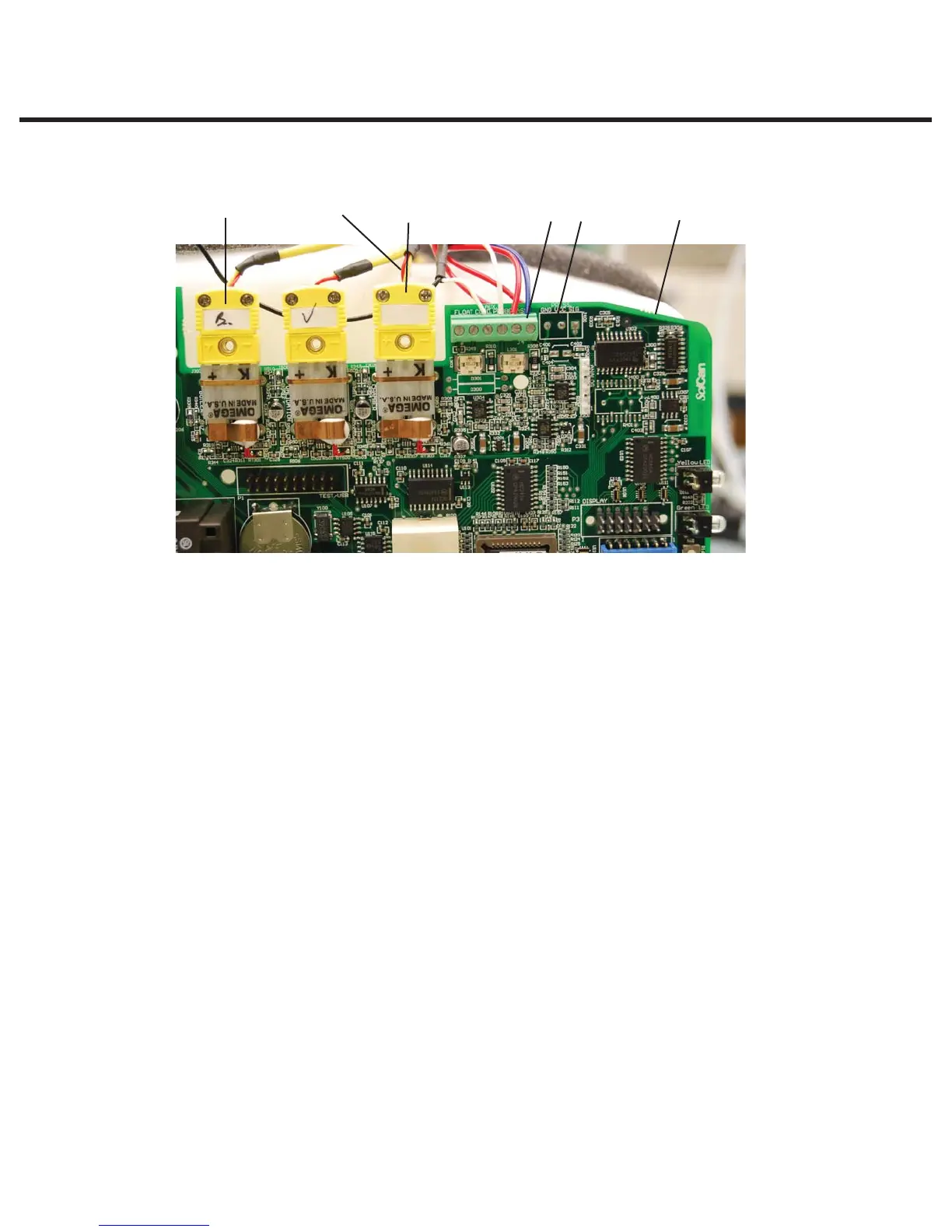 c. Disconnect the chamber thermocouple plug (7) from the socket on the controller board.