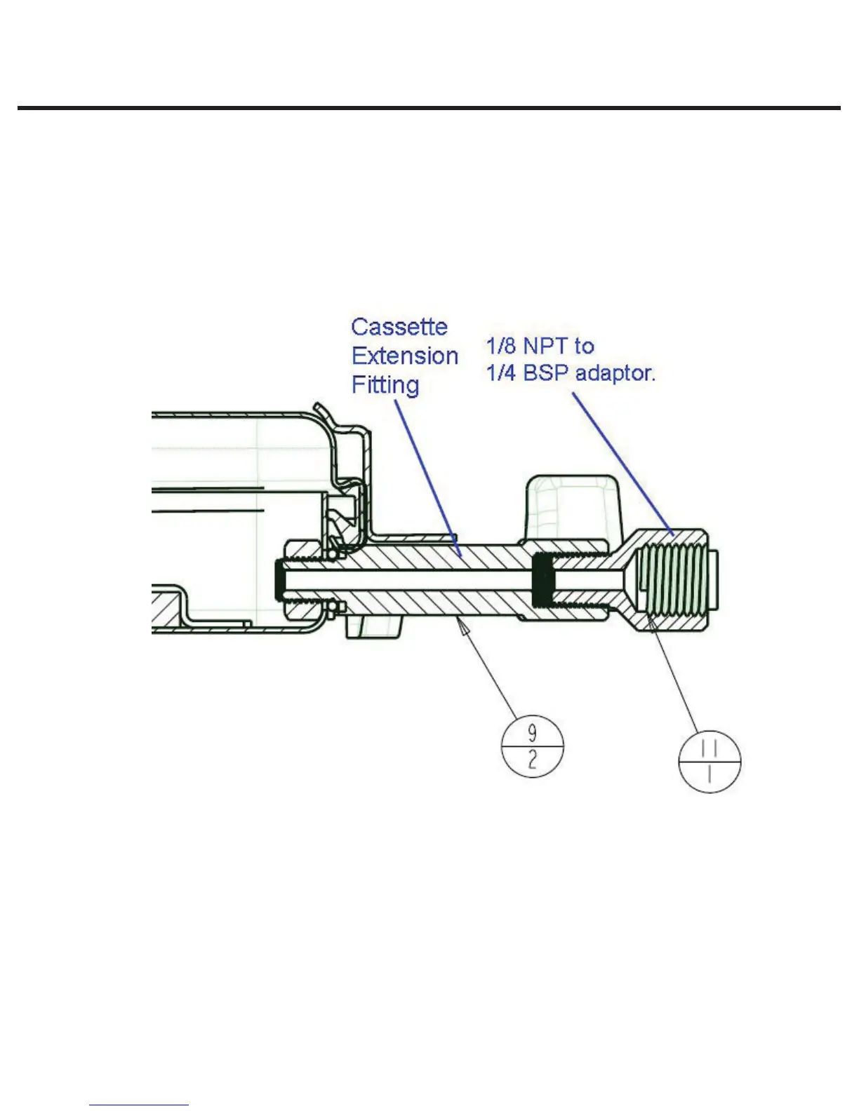 Remove the 1/8 NPT to ¼ BSP adaptor. (The accessories for the cassette include 2 male