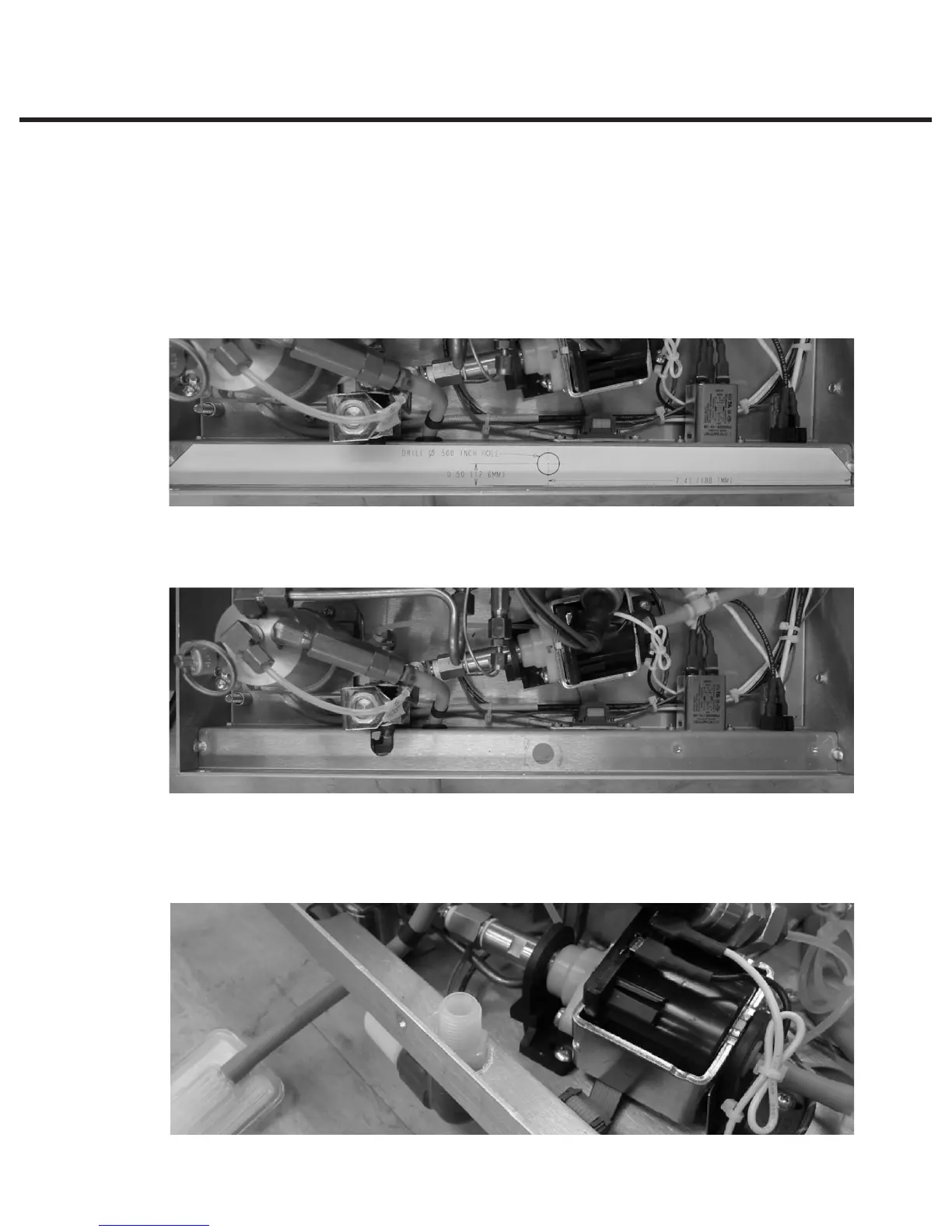 hole for the Medo filter at 7.41” (188.1 mm) from left wall and 0.50” (12.6 mm) from back wall.