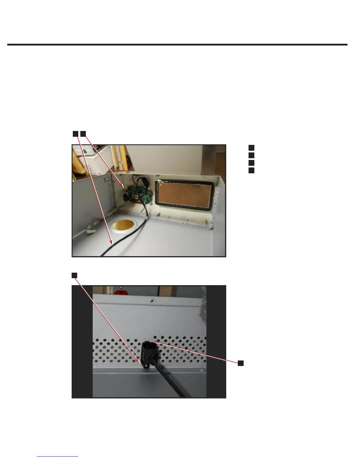 1. Disconnect the Ethernet port cable (1) from the LCD controller board (2).