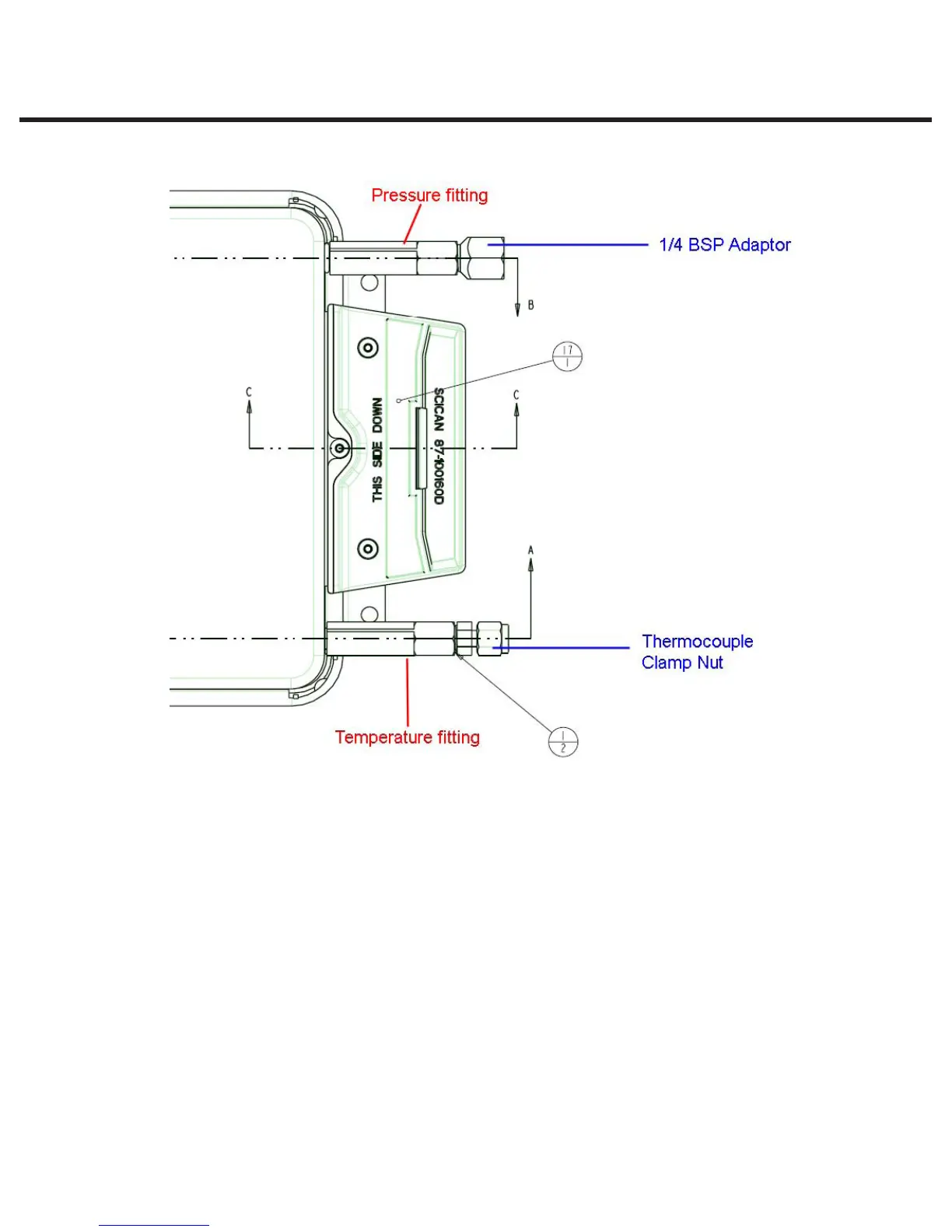There are two fittings supplied with the cassette, one for a 1/8” (3.175mm) temperature probe and