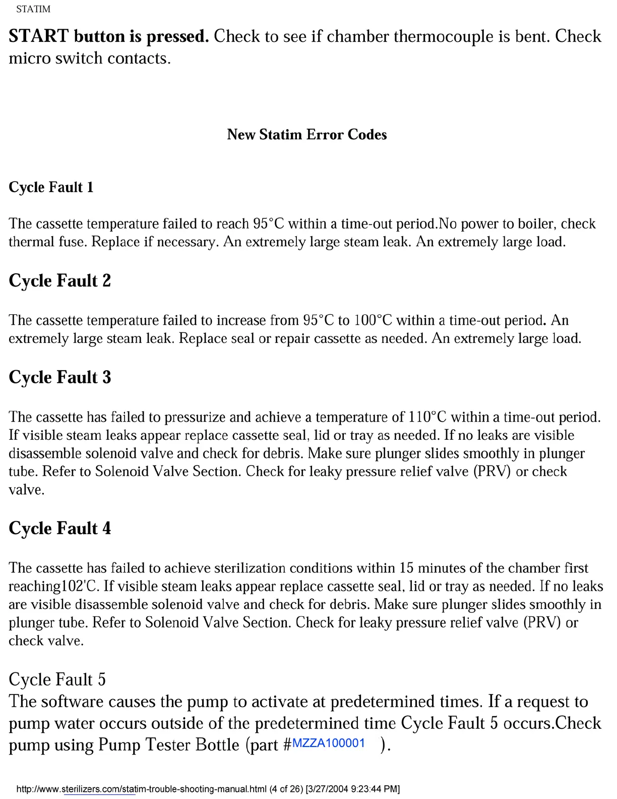 SciCan STATIM - New Statim Error Codes; Cycle Fault 1; Cycle Fault 2; Cycle Fault 3