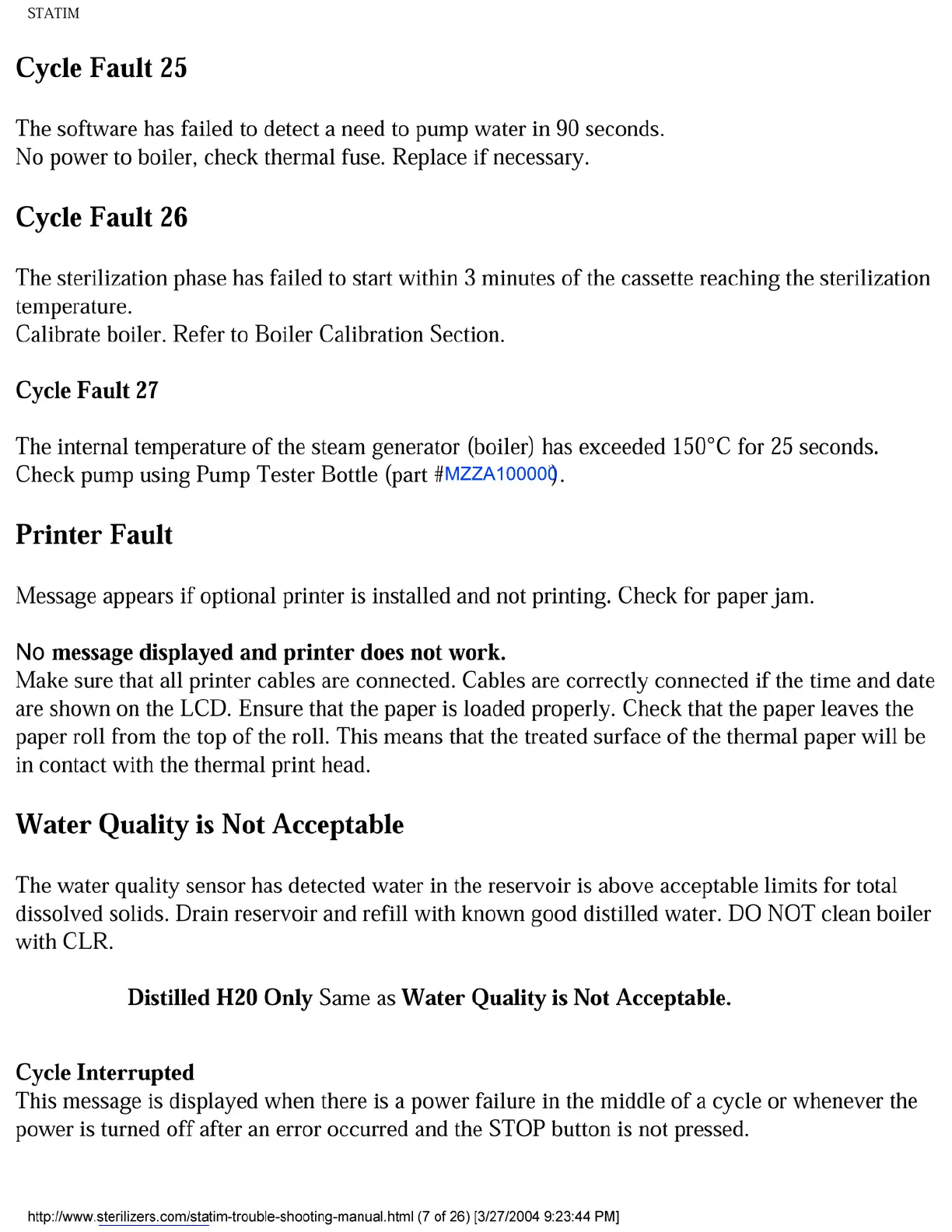 SciCan STATIM - Cycle Fault 25; Cycle Fault 26; Cycle Fault 27; Water Quality Issues