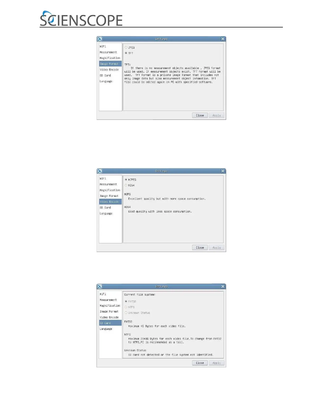TFT: Save captured image in TFT format into SD card. The TFT format saves not only image data but also the