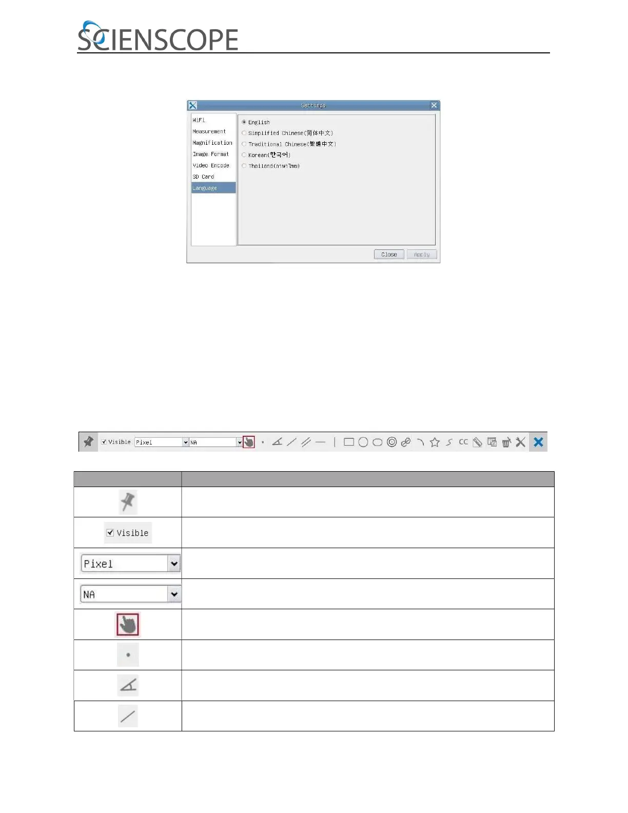 Here are the introduction of the various functions on the Measurement Toolbar: