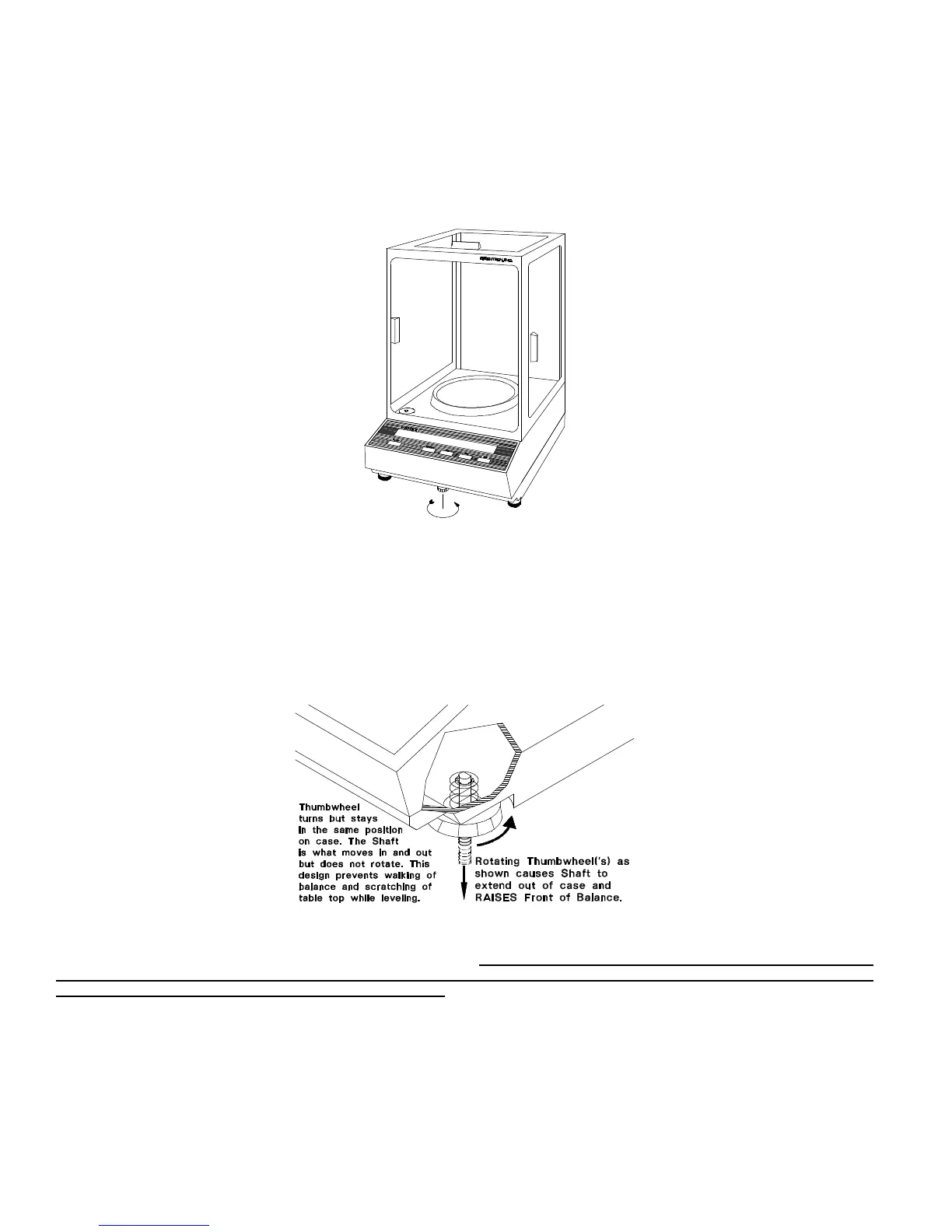 shown in Figure 1. Turning the foot as shown below raises that side of the balance and an opposite adjustment lowers it. When