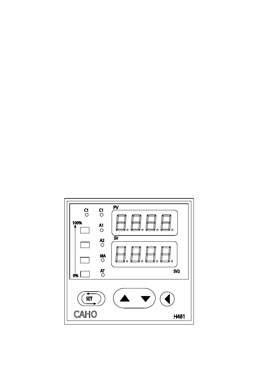 3. The top display (red) shows the actual temperature (PV) in the