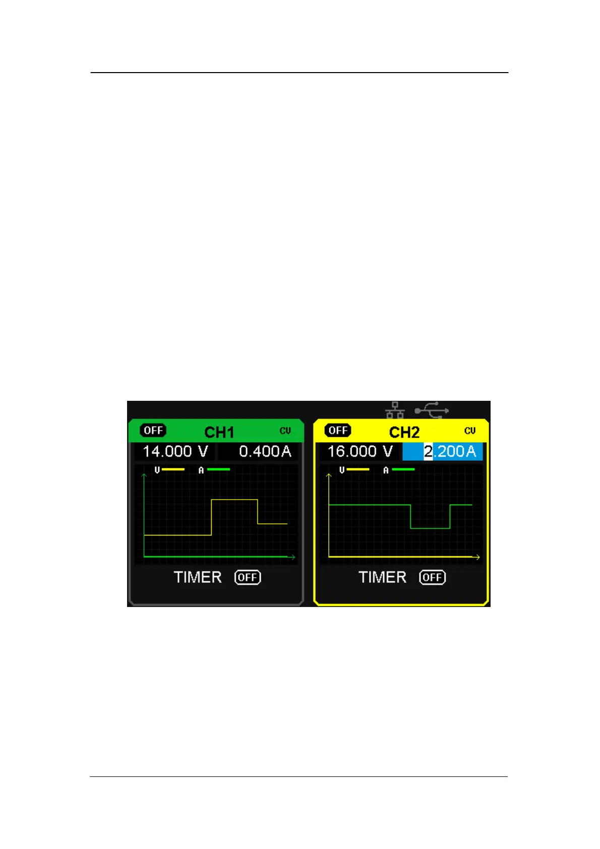 1. Select CH1/CH2, and then set voltage/current parameter;