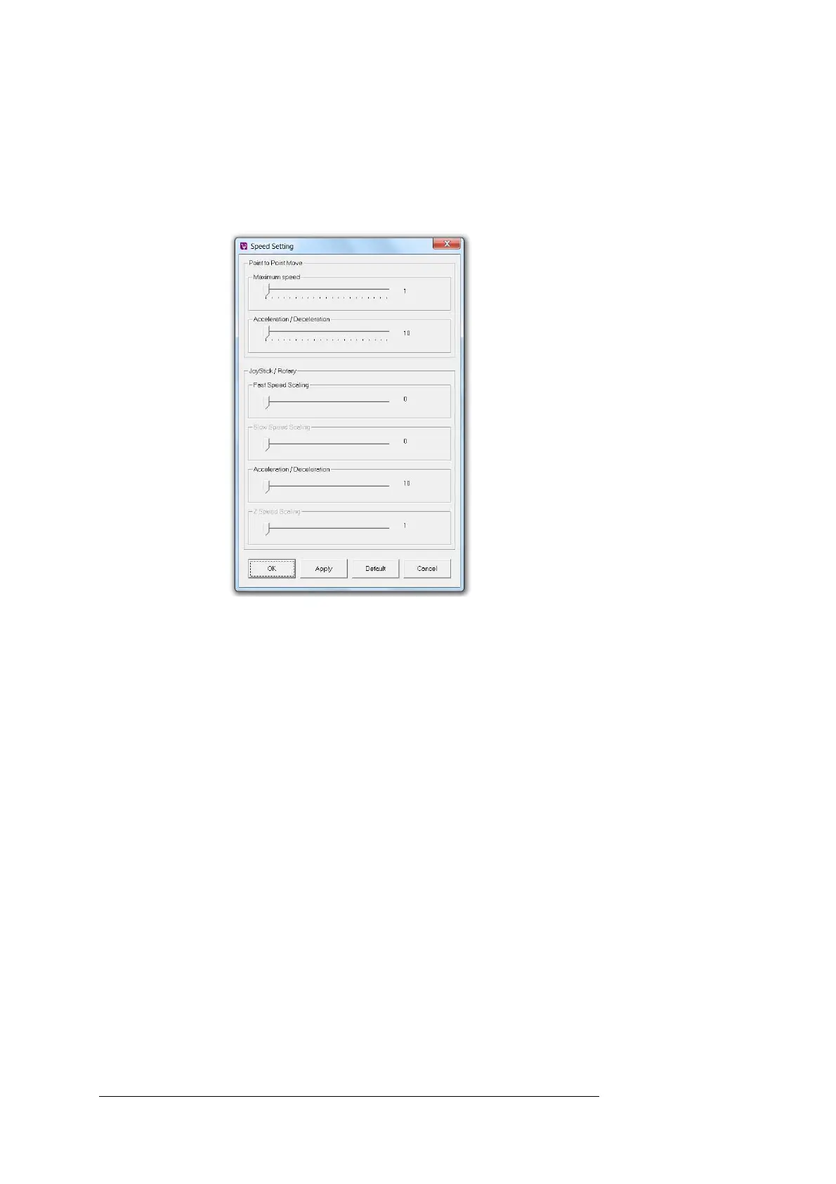 user wants to return to the default settings, select default and Apply or