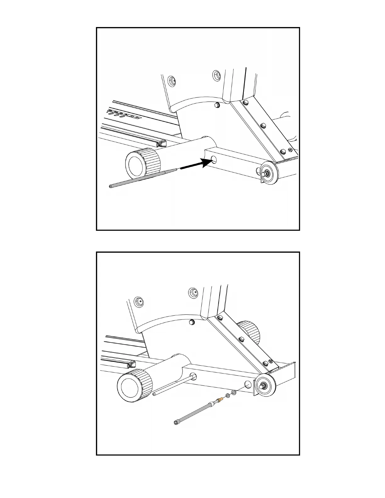 the front hole of the base frame closest to the transport wheels as shown.