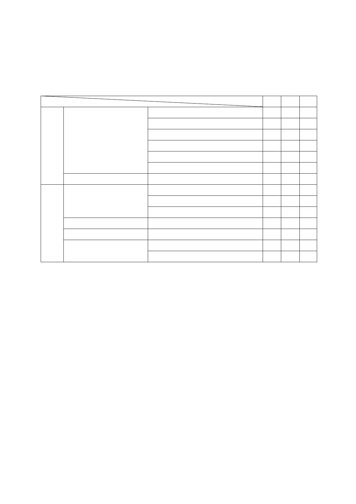 O:Applicable X:Inapplicable